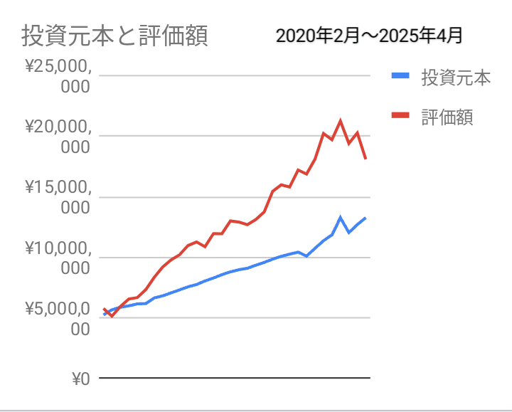 8年間で大きめな暴落は、2020年2月からのコロナショック、2025年4月からのトランプショックと、2つありました。