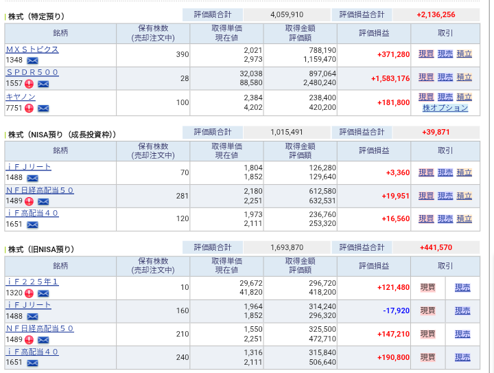まぁ、ワタシ的にはインデックスの長期積み立て投資がメインなので、一喜一憂してもしょうがないわけですが…