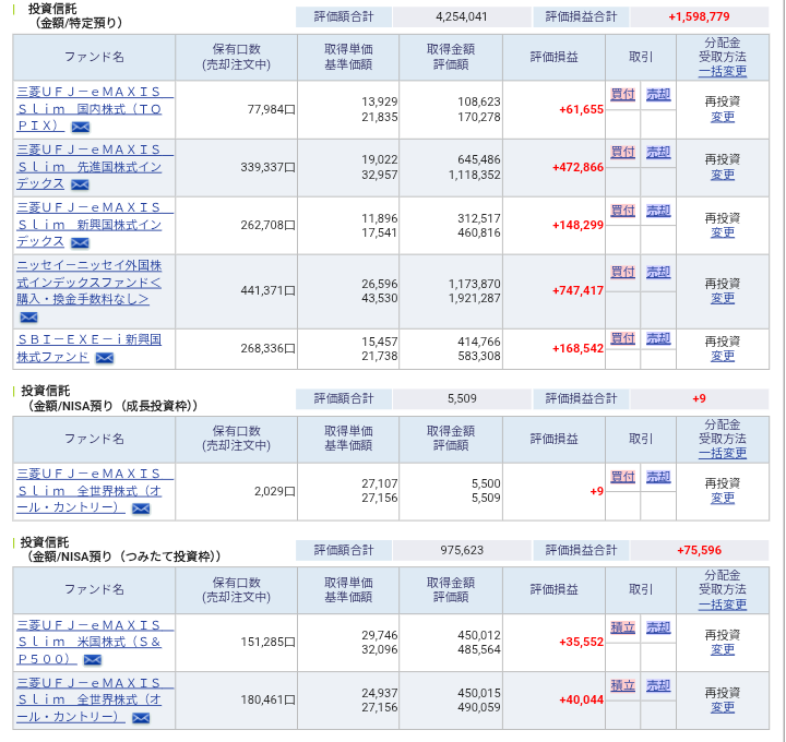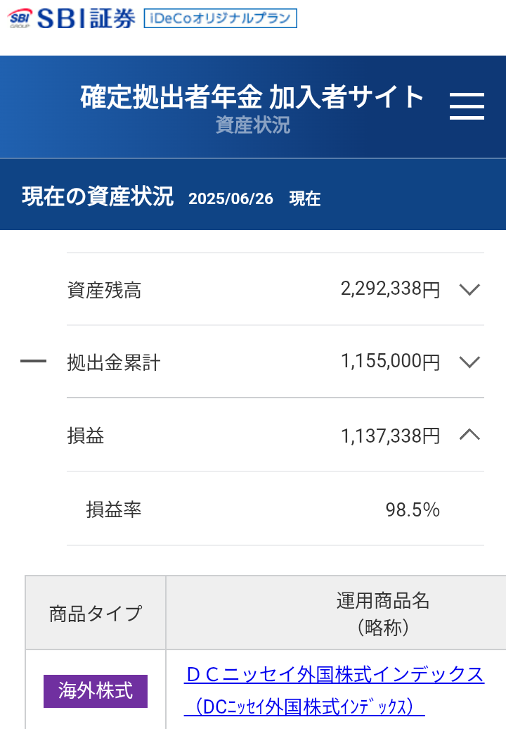 iDeCoはスタート以来同一商品で通しています。積み立て額だけ、今年から少々増額しました。