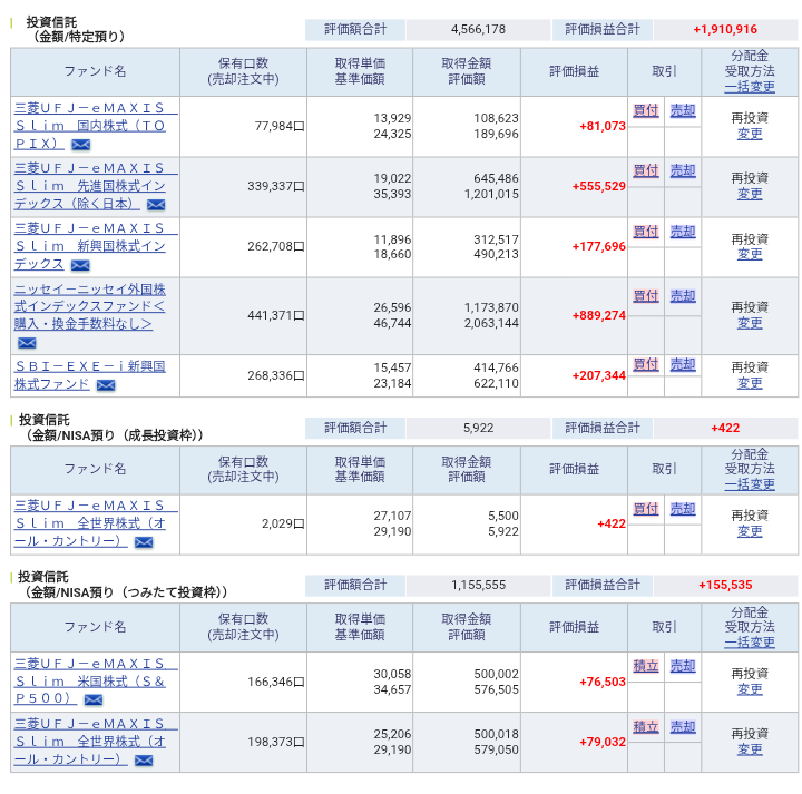 というわけで、投資歴8年2ヶ月の、リスク資産の運用状況は、