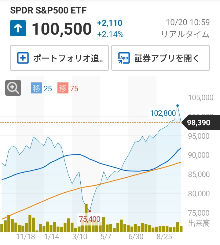 ちなみに1557(S&P500 ETF)の年間チャートはこんなです↓