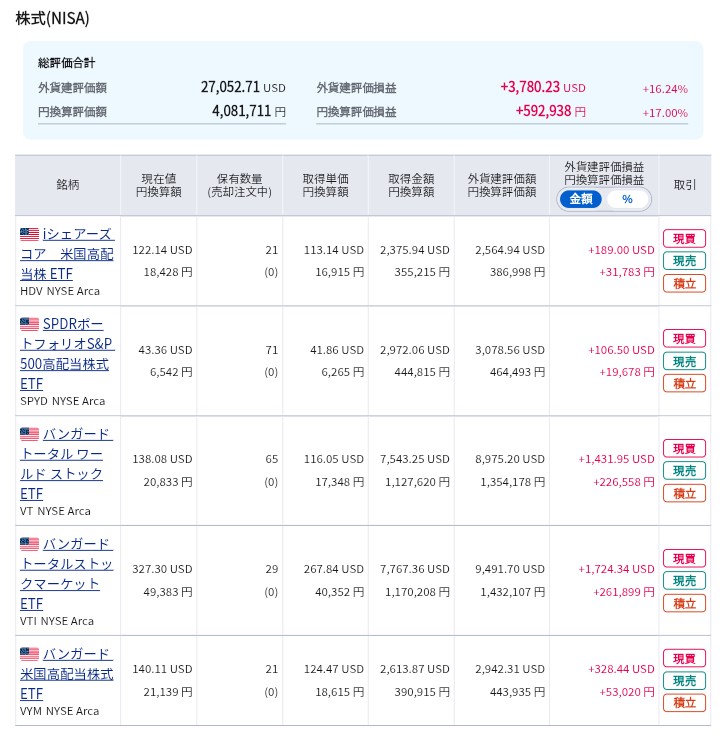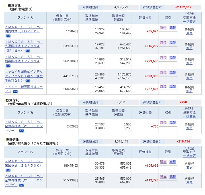 ここは無難にNISA積み立て枠にて、オルカンS&P500の両方を積立投資中です。