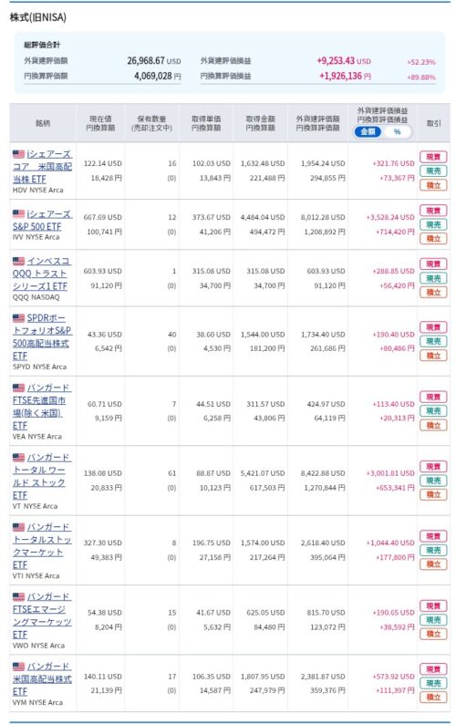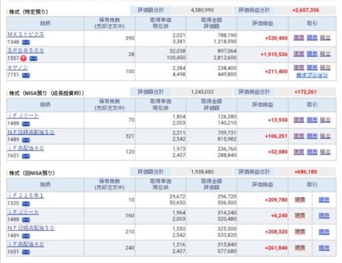 ここは無難にNISA積み立て枠にて、オルカンとS&P500の両方を積立投資中です。