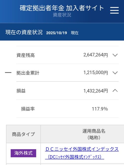 NISAや特定口座でSBI証券を利用してる人が、iDeCoでもSBI証券を利用する場合、SBI証券のホームページからもiDeCoの運用状況をチェック出来るようになりました。