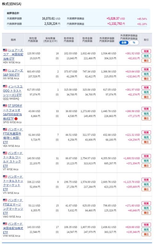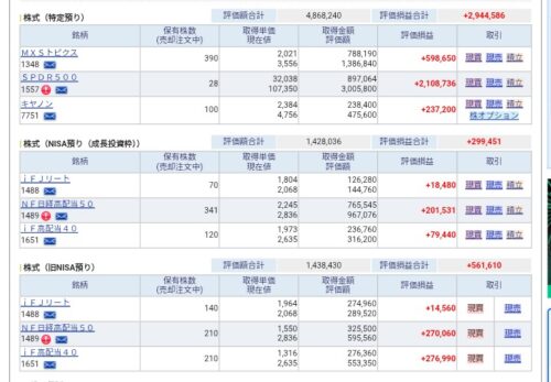 こちらも、旧NISAの頃に購入したETFがいくつか満了を迎えたので、非課税のうちに売却しました。売却結果についてはまた改めて記事にします。