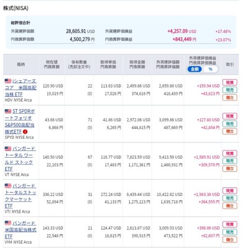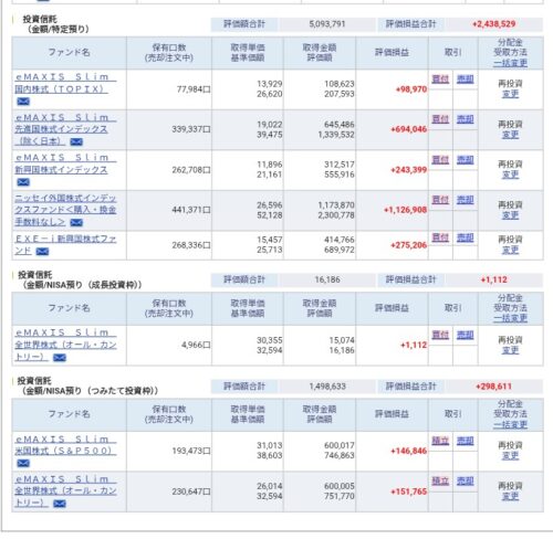 NISA積み立て枠にて、オルカンS&P500の2本を積み立て購入しています。